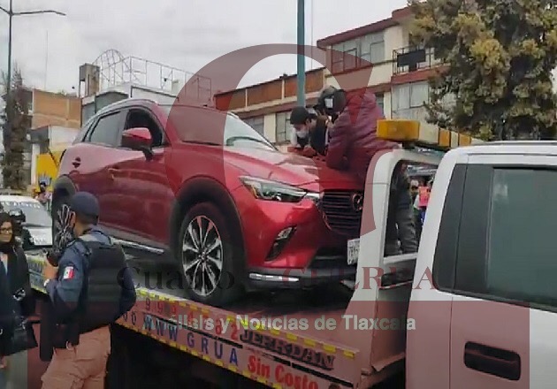 Un grupo de vecinos de Apizaco trató de impedir la tarde de este lunes que personal de la Secretaría de Seguridad Pública (SSC), del área de recuperación de vehículos, asegurara un auto con reporte de robo vigente.
